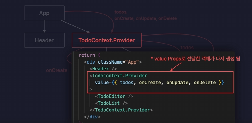 <TodoContext.Provider value={{todos, onCreate, onUpdate, onDelete}}>